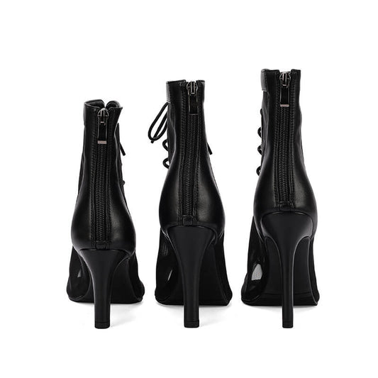 Hollow Mesh Open-Toe High-Heeled Dance Boots