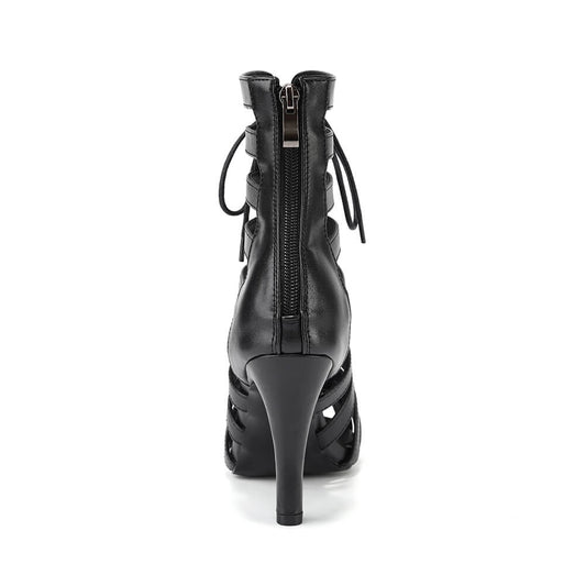 Black Lace Up Mesh Peep Toe Dance Boots