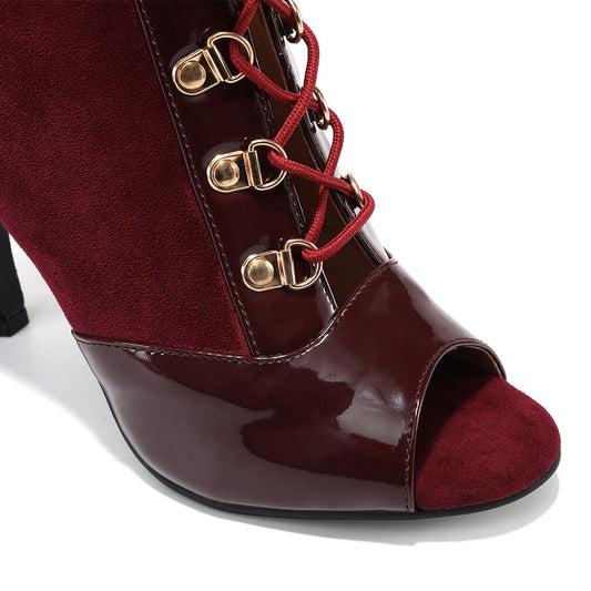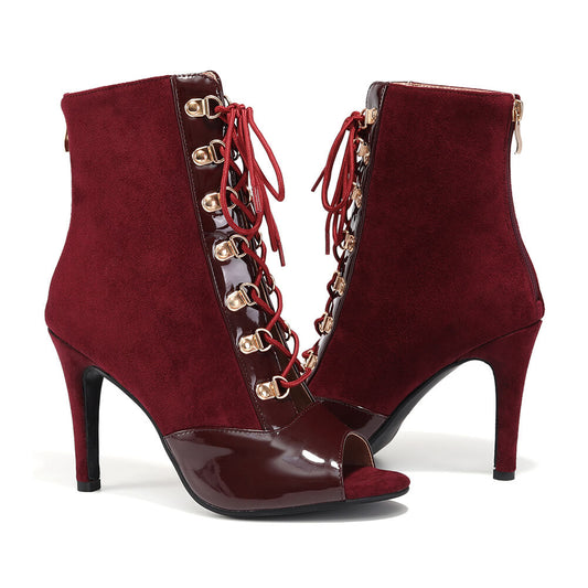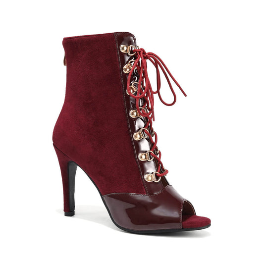 • Women's Stiletto Open Toe Lace-Up Ankle Boots