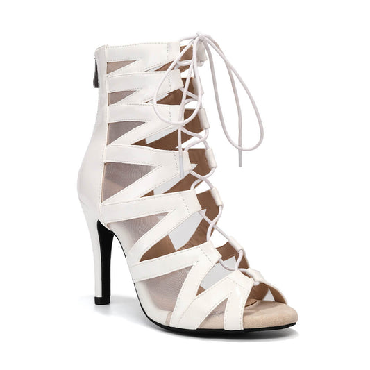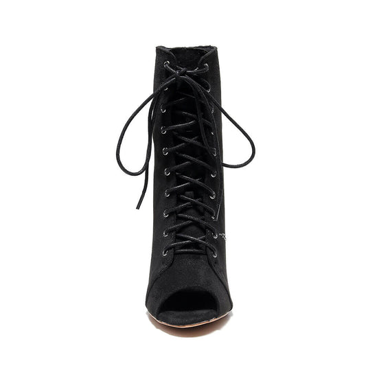 Women's Stiletto Open Toe Lace-Up Ankle Boots