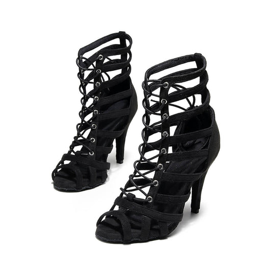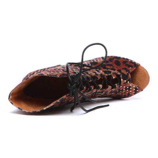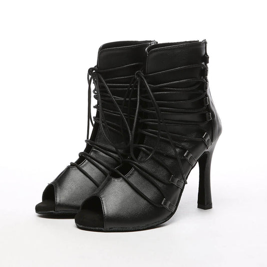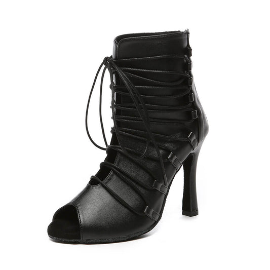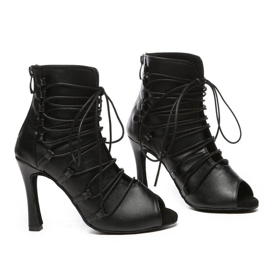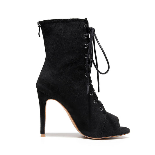 • Women's Stiletto Open Toe Lace-Up Ankle Boots