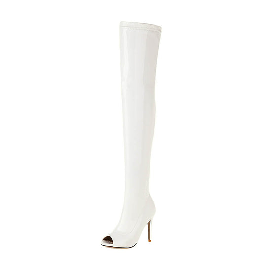 Black Matte Open Toe Lace-up Over-the-knee Boots