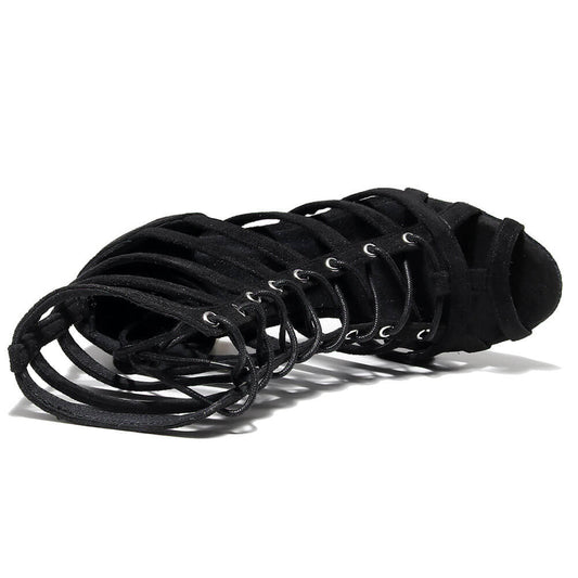 • Black Matte Open Toe Lace-up Over-the-knee Boots