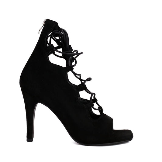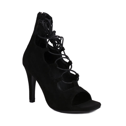 • Apricot Peep Toe Lace-up Mesh Stiletto Boots