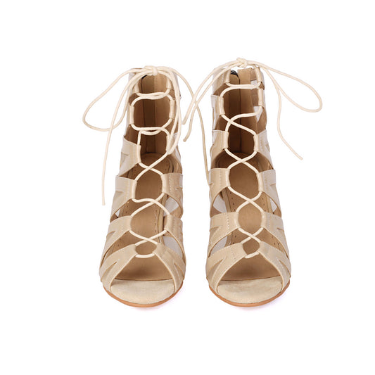 Gold Lace-Up Open-Toe Dance Boots