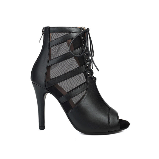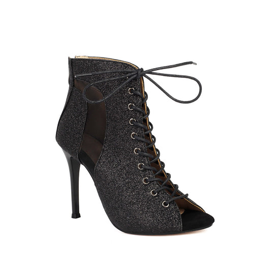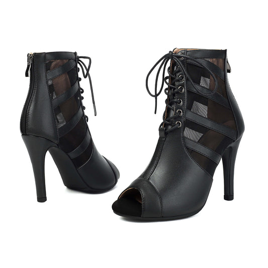 Black Lace-Up Open-Toe Dance Boots