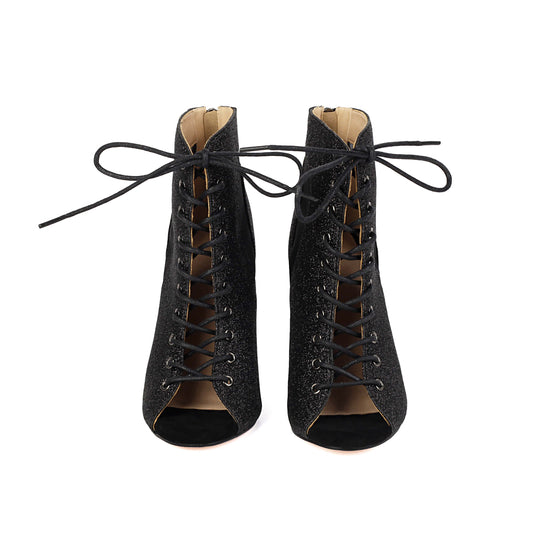 • Black Lace-Up Open-Toe Dance Boots
