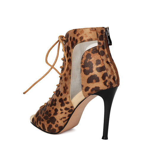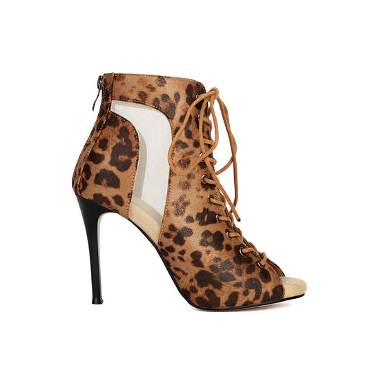 • Leopard Print Lace-up Dance Boots