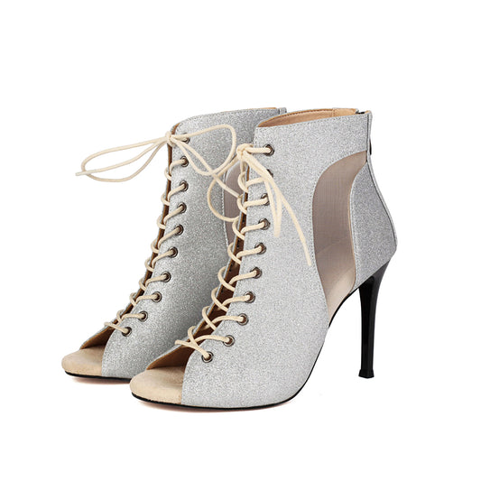 • Silver Sequined Mesh Dance Boots