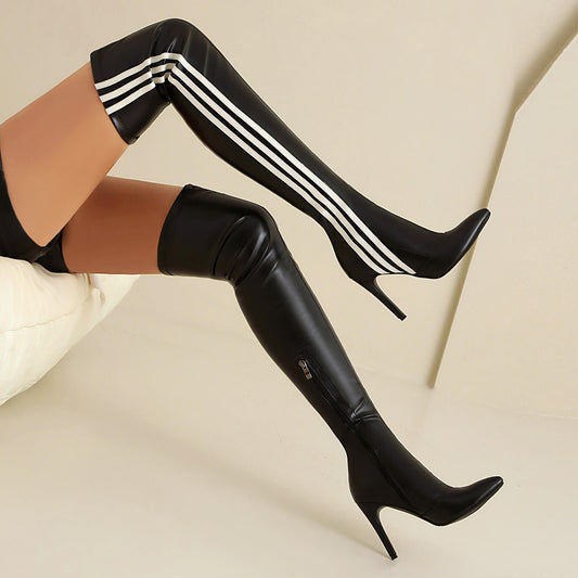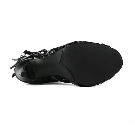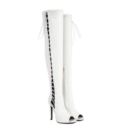 Silver Ladies Lace-up Glitter High Heels Dance Boots