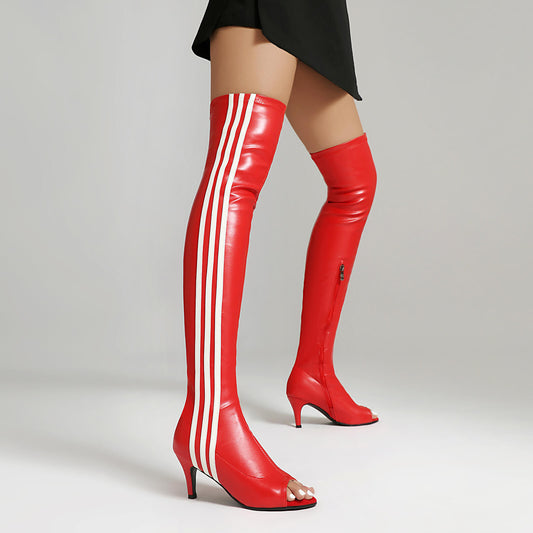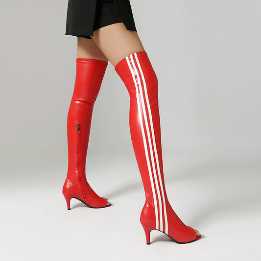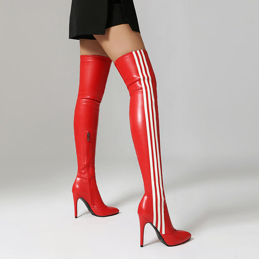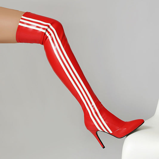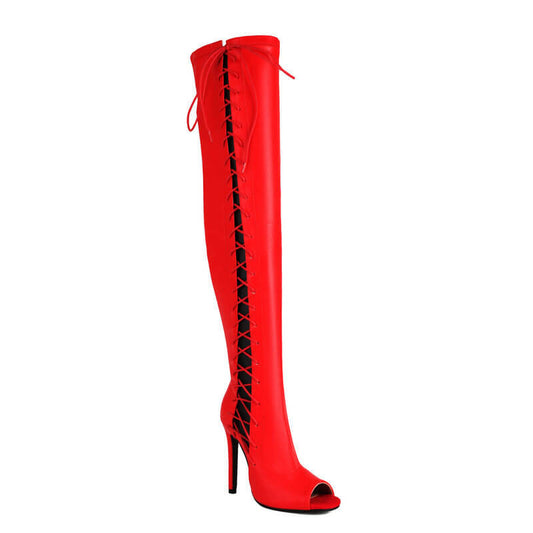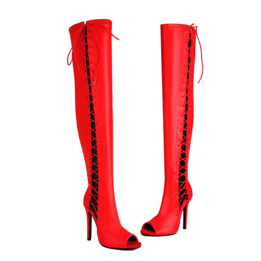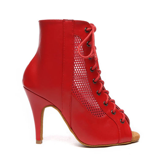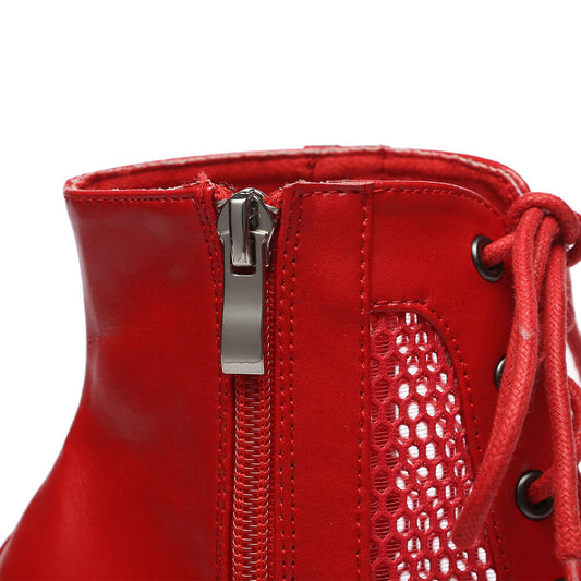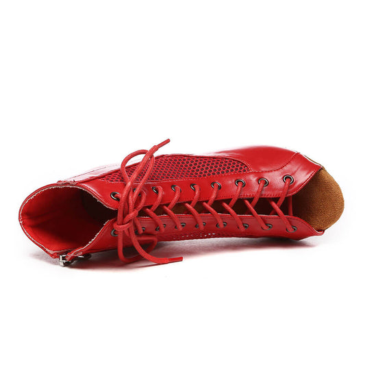 Red Ladies Lace-up Glitter High Heels Dance Boots