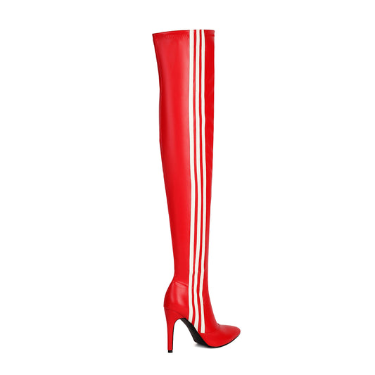 • Red Ladies Lace-up Glitter High Heels Dance Boots