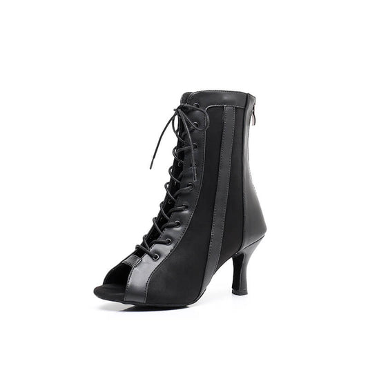 • Silver Ladies Lace-up Glitter High Heels Dance Boots