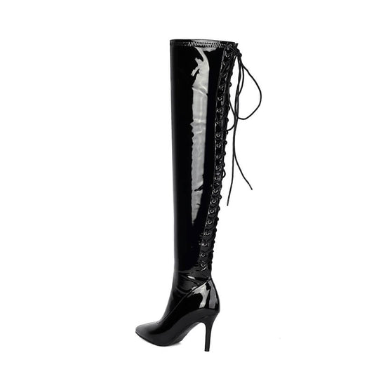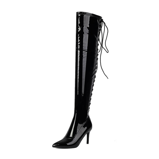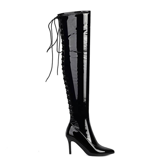 Stivali neri sopra il ginocchio con lacci e punta affilata