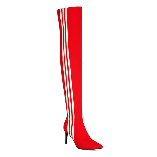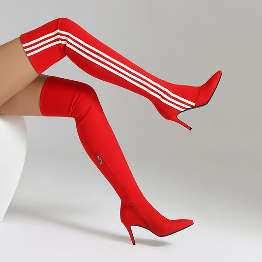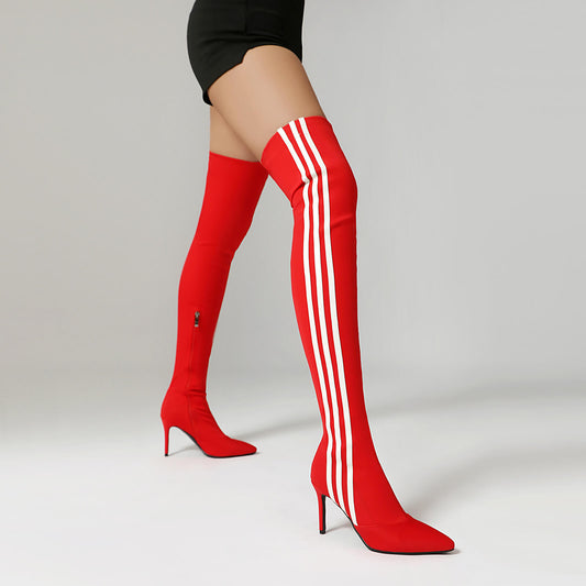 Stivali sopra il ginocchio con striscia laterale rossa a punta