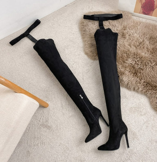 • Stivali sopra il ginocchio a punta in un unico pezzo