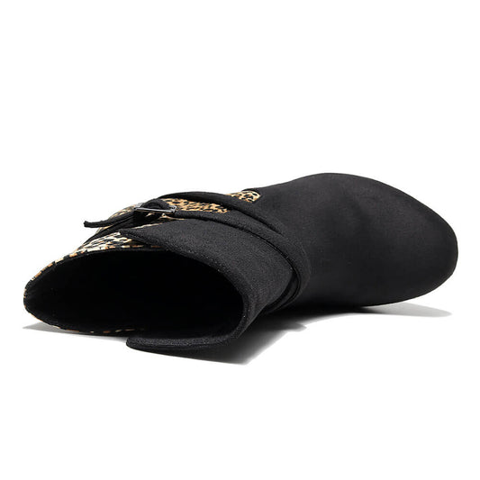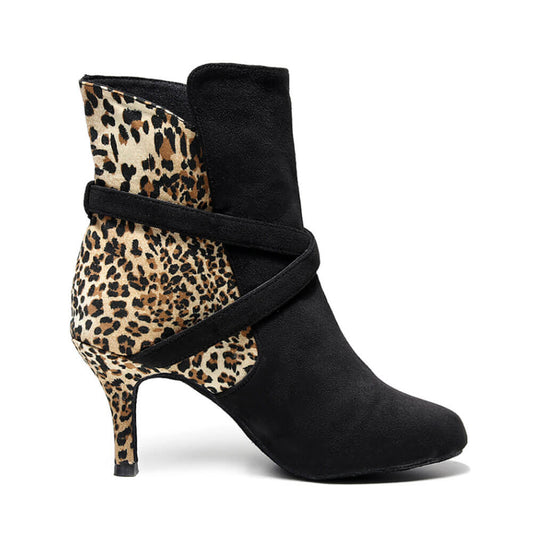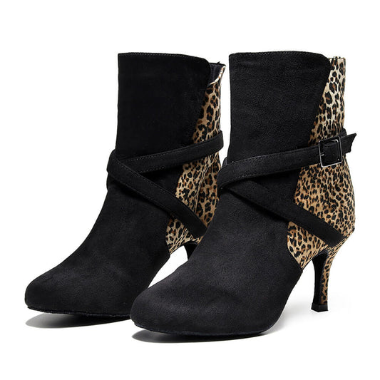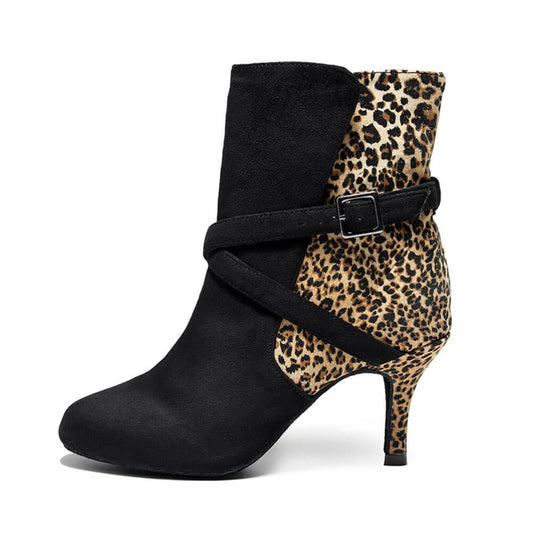 • Stivali da ballo leopardati con punta chiusa e fibbia da donna