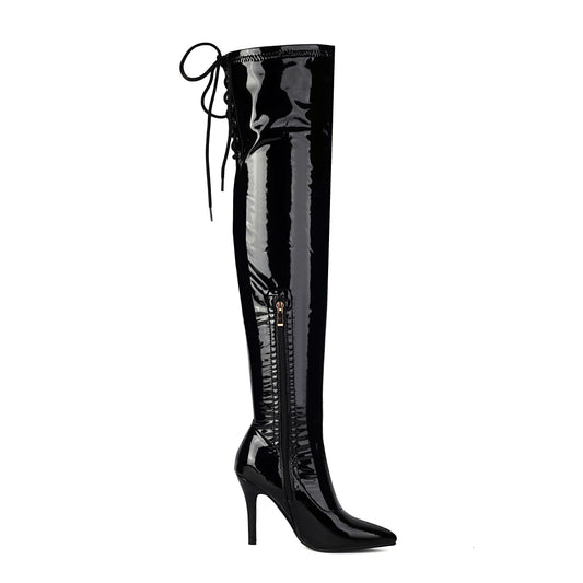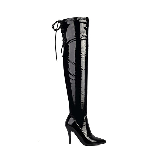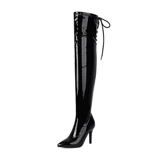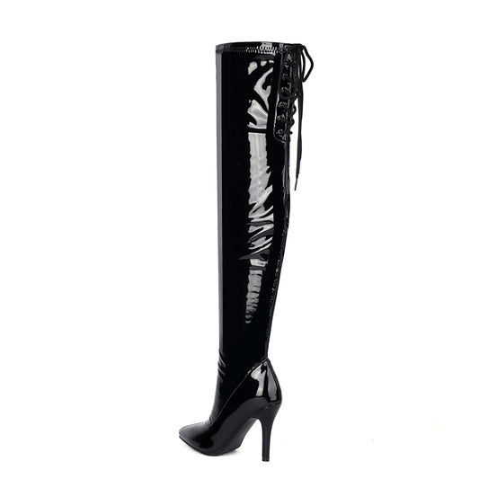 Stivali sopra il ginocchio con punta chiusa in vernice nera