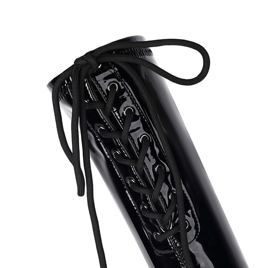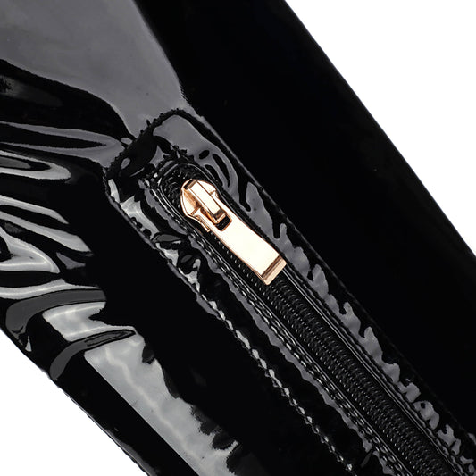 • Stivali sopra il ginocchio con punta chiusa in vernice nera