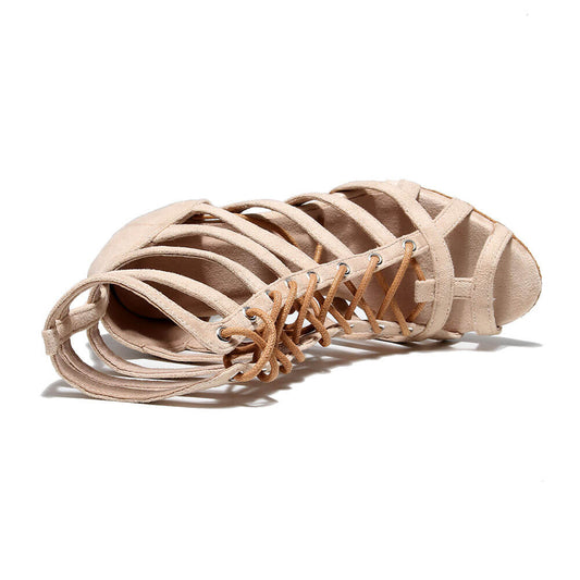 • Stivali da ballo da donna stringati in pelle scamosciata cava