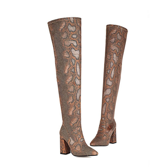 • Stivali da ballo leopardati sopra il ginocchio