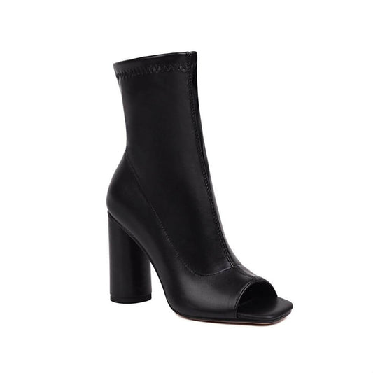 Stivaletti alla caviglia con lacci e punta aperta, stiletto, da donna