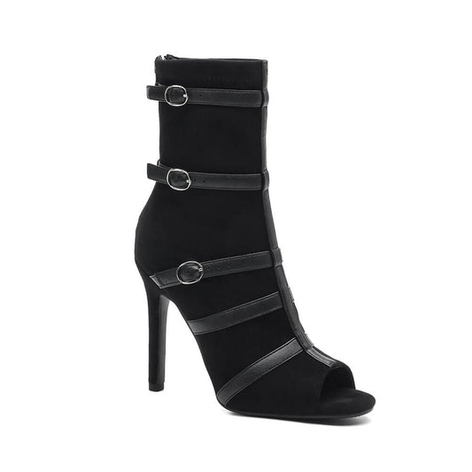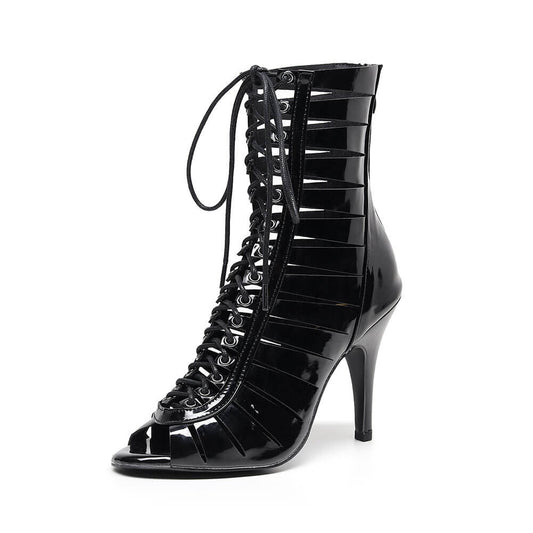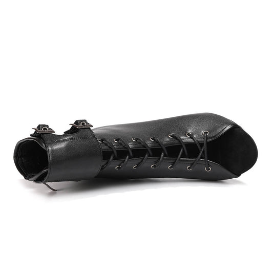 • Stivaletti da ballo con fibbia e punta aperta da donna