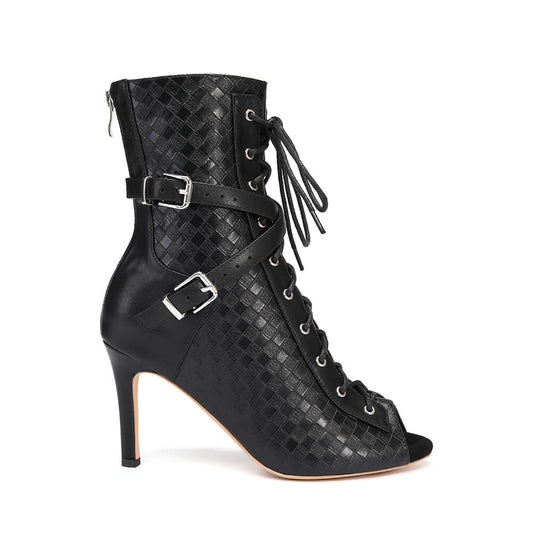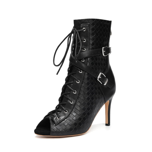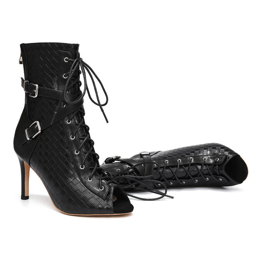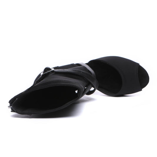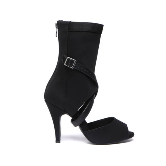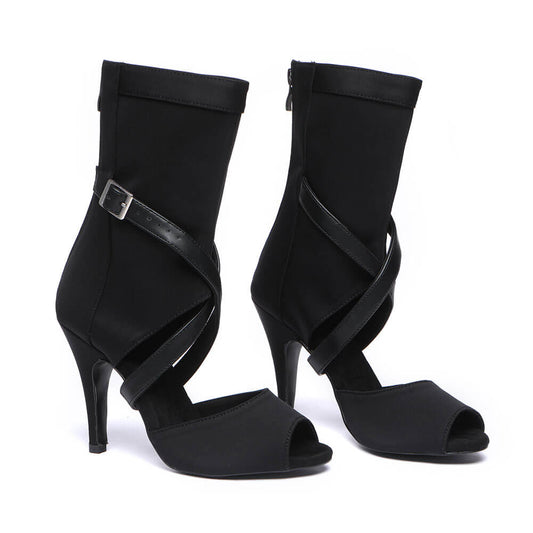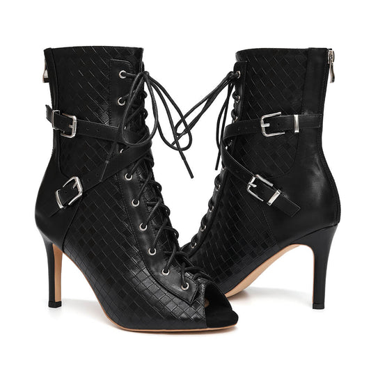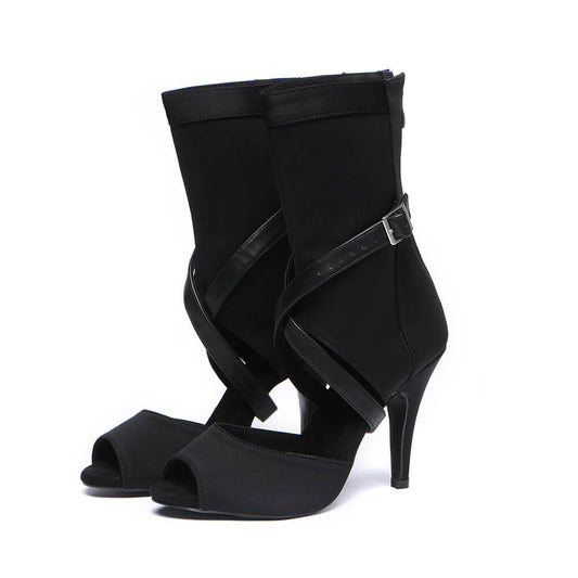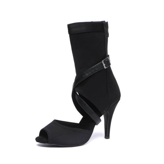 Stivaletti da ballo con fibbia e punta aperta da donna