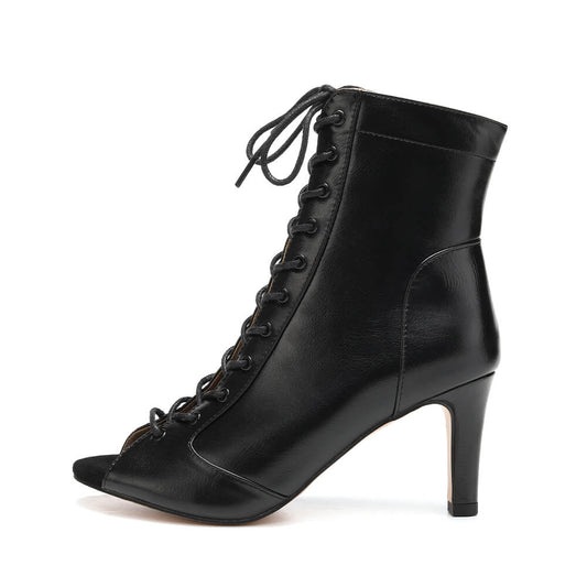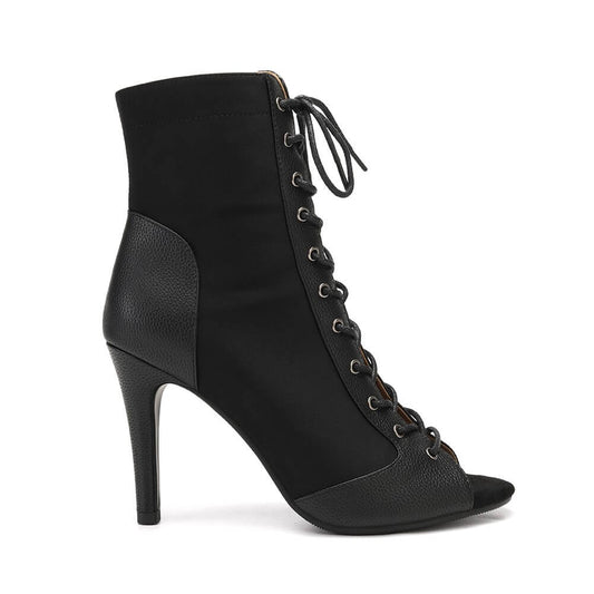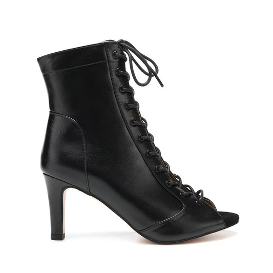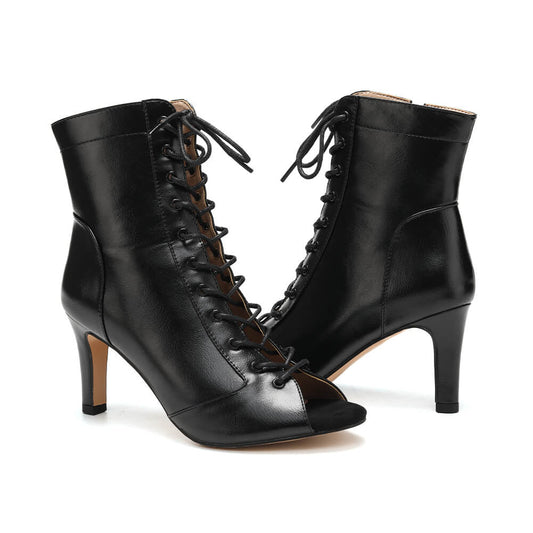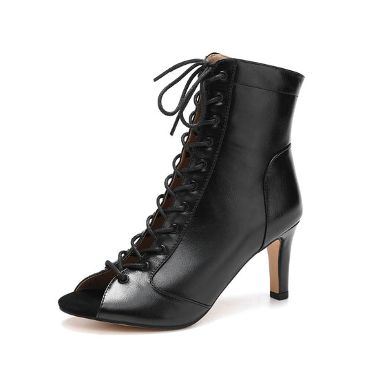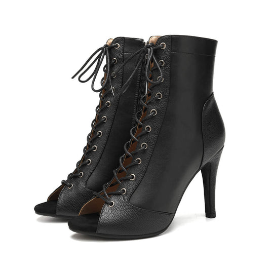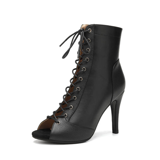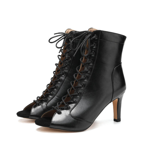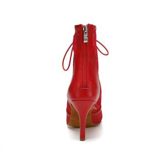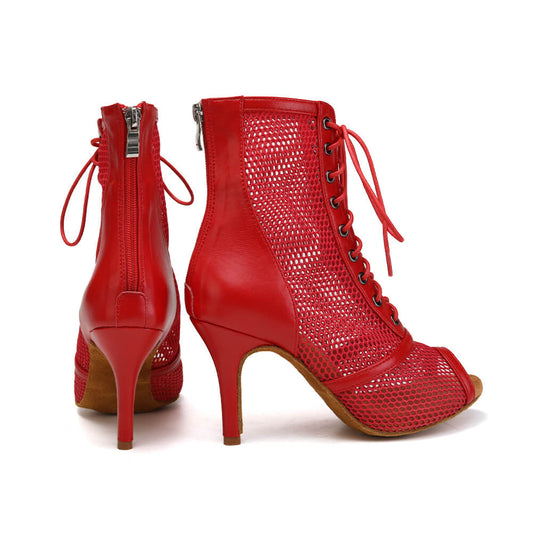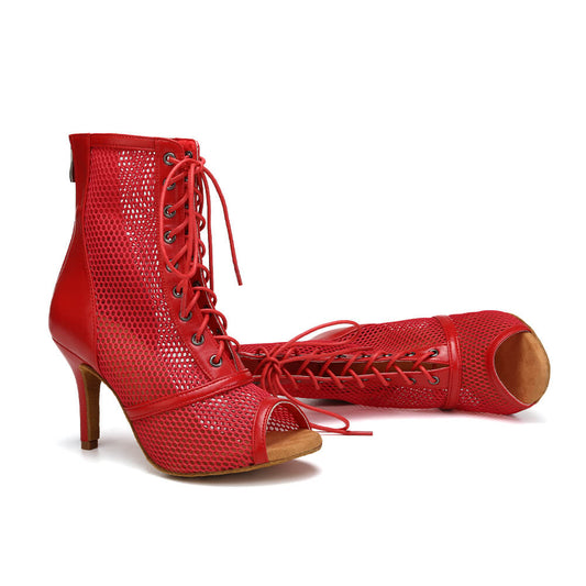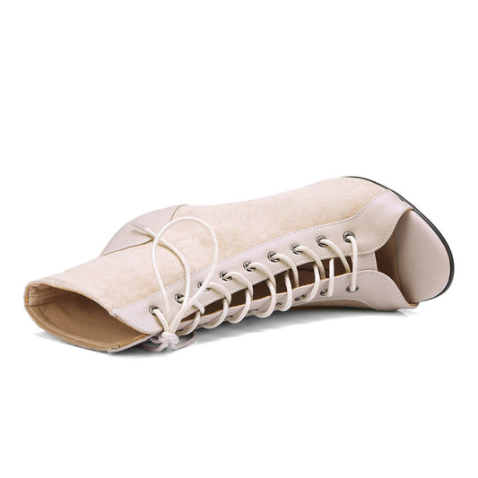 • Stivali da ballo con punta aperta in rete e lacci color albicocca