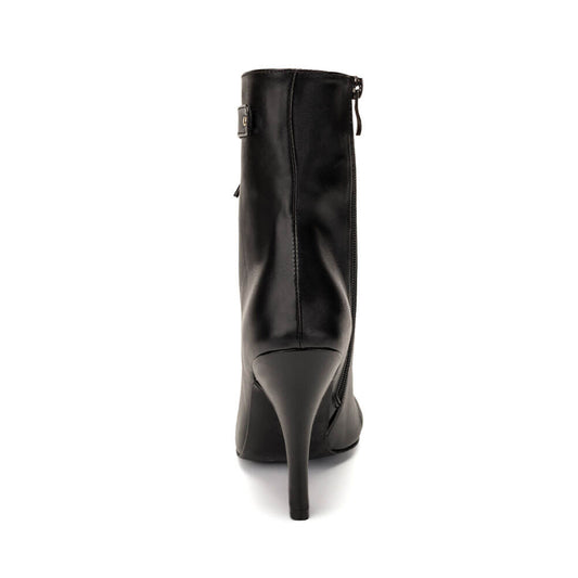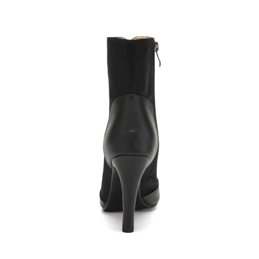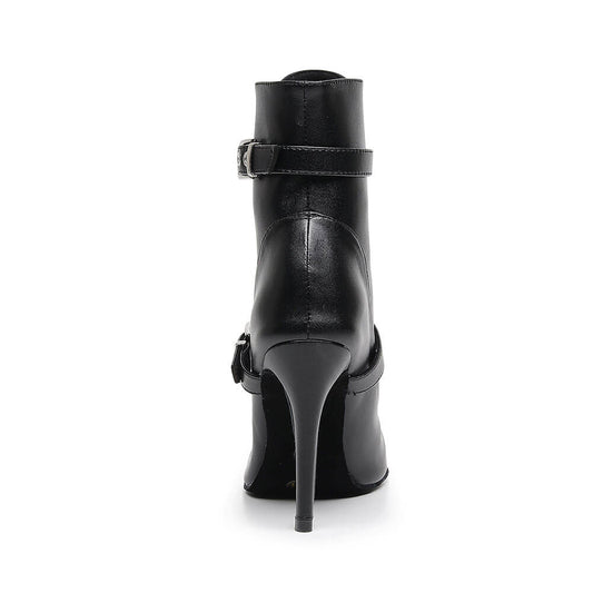 • Stivali neri con tacco e punta aperta in pelle scamosciata