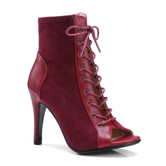 Stivali da ballo con punta aperta in rete e lacci color albicocca
