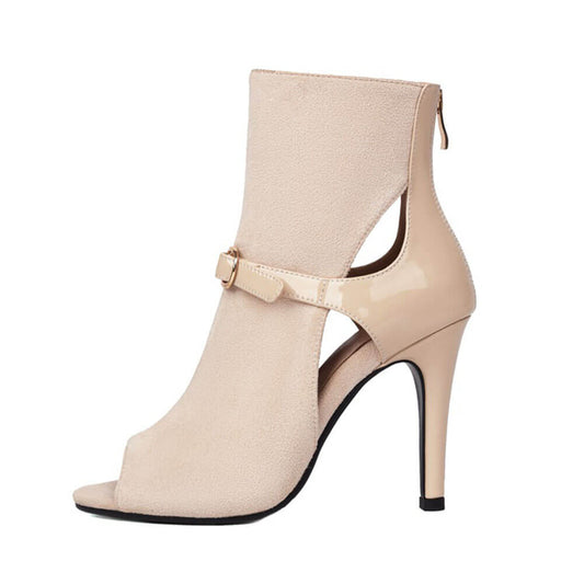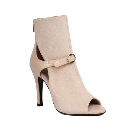 • Stivali con tacco in pelle scamosciata con punta aperta color albicocca
