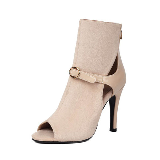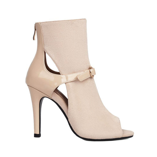 Stivali con tacco in pelle scamosciata con punta aperta color albicocca