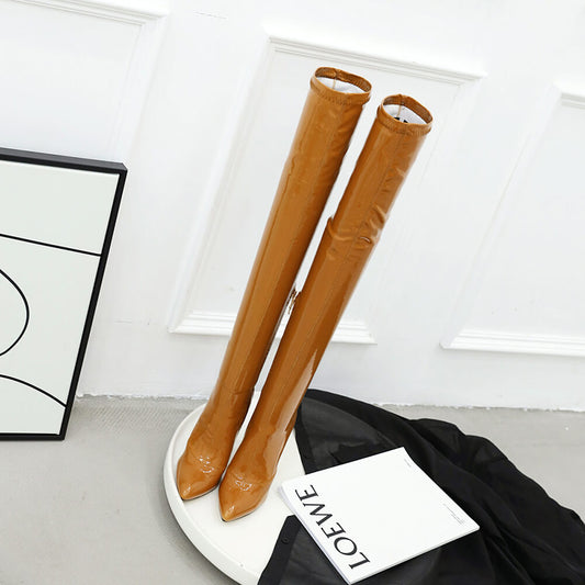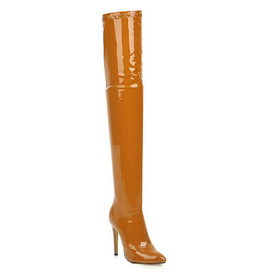 Stivali con tacco a spillo lunghi e sottili in vernice PU