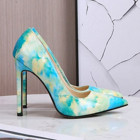 Scarpe vegetariane con punta arcobaleno verde