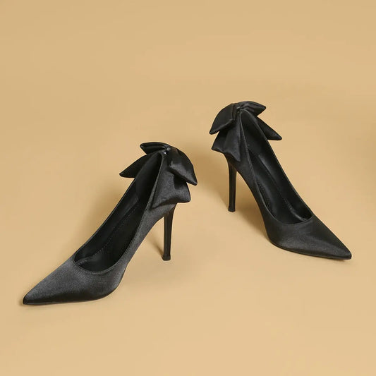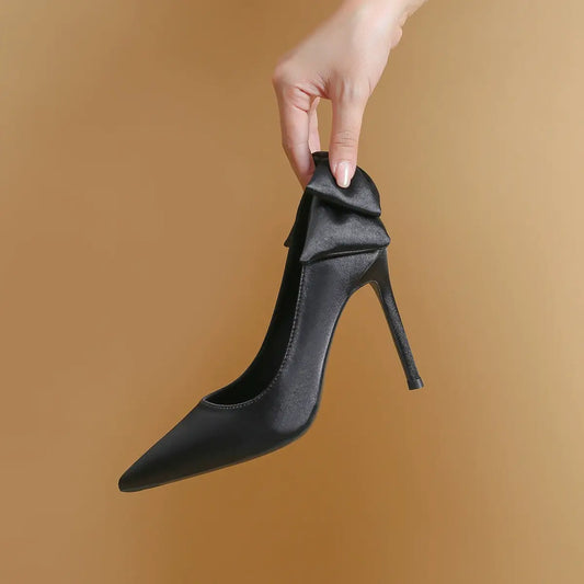 Décolleté in raso con punta a punta e fiocco